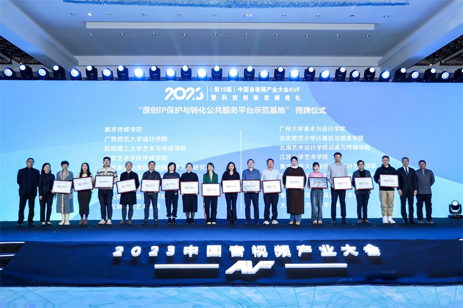 12月6日,由中国电子视像行业协会主办,以“变革突破迷局、开放共创蓝图、推动科技创新、引领炫彩生活”为主题的第19届中国音视频产业大会(AVF)暨“科技创新奖”颁奖礼在北京举行。近50家企业代表及20多位国内知名学府的数字艺术领域专家和艺术家齐聚一堂,共同探讨音视频产业的科技创新和未来发展趋势,并为各校颁发“原创IP保护与转化公共服务平台示范基地”,动画与传媒学院教师李高昱昊、数字媒体艺术专业教师徐相坤代表学校出席活动。