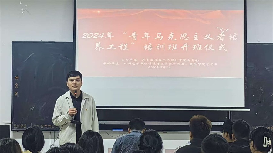 为深入贯彻习近平新时代中国特色社会主义思想,进一步加强对青年大学生的思想政治引领,促进青马学员成长为中国特色社会主义事业奉献的合格建设者和可靠接班人,12月1日上午,由书法学院与美术学院联合举办的2024-2025学年“青年马克思主义者培养工程”培训班开班仪式在西校区艺术楼314顺利举行。美术学院党总支书记韩玮,书法学院党支部副书记左云飞,书法学院分团委书记李家琪,美术学院分团委书记许荣军,马克思主义学院教师何敏芝出席开班仪式。书法学院、美术学院学生干部参加培训。