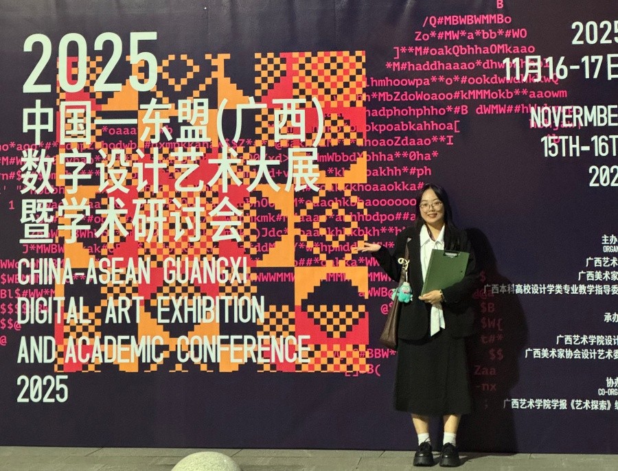 11月15日-17日,2025中国—东盟(广西)数字设计艺术大展暨学术研讨会在广西艺术学院相思湖校区成功举办。我校影视动画学院教师林芊芊受邀参会,并在“文化遗产的设计创新与数字化转译”平行研讨会中作专题汇报。