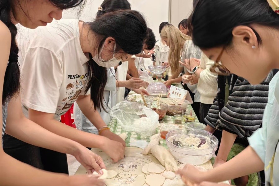 随后开展的包饺子环节将活动氛围推向高潮。全体参与人员以小组为单位协作配合,揉面、擀皮、包馅等各环节有序推进。手法娴熟的师生主动分享包饺子技巧,耐心指导初次尝试的同学,大家在交流互动中增进了解,在捏褶塑形的过程中不时传出欢声笑语。在一揉一擀、一包一捏的实践操作中,师生们深刻感悟冬至传统习俗所蕴含的温暖情谊与深厚民族文化内涵。