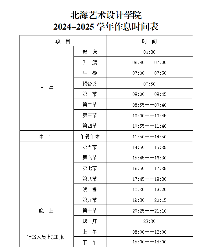 作息时间表