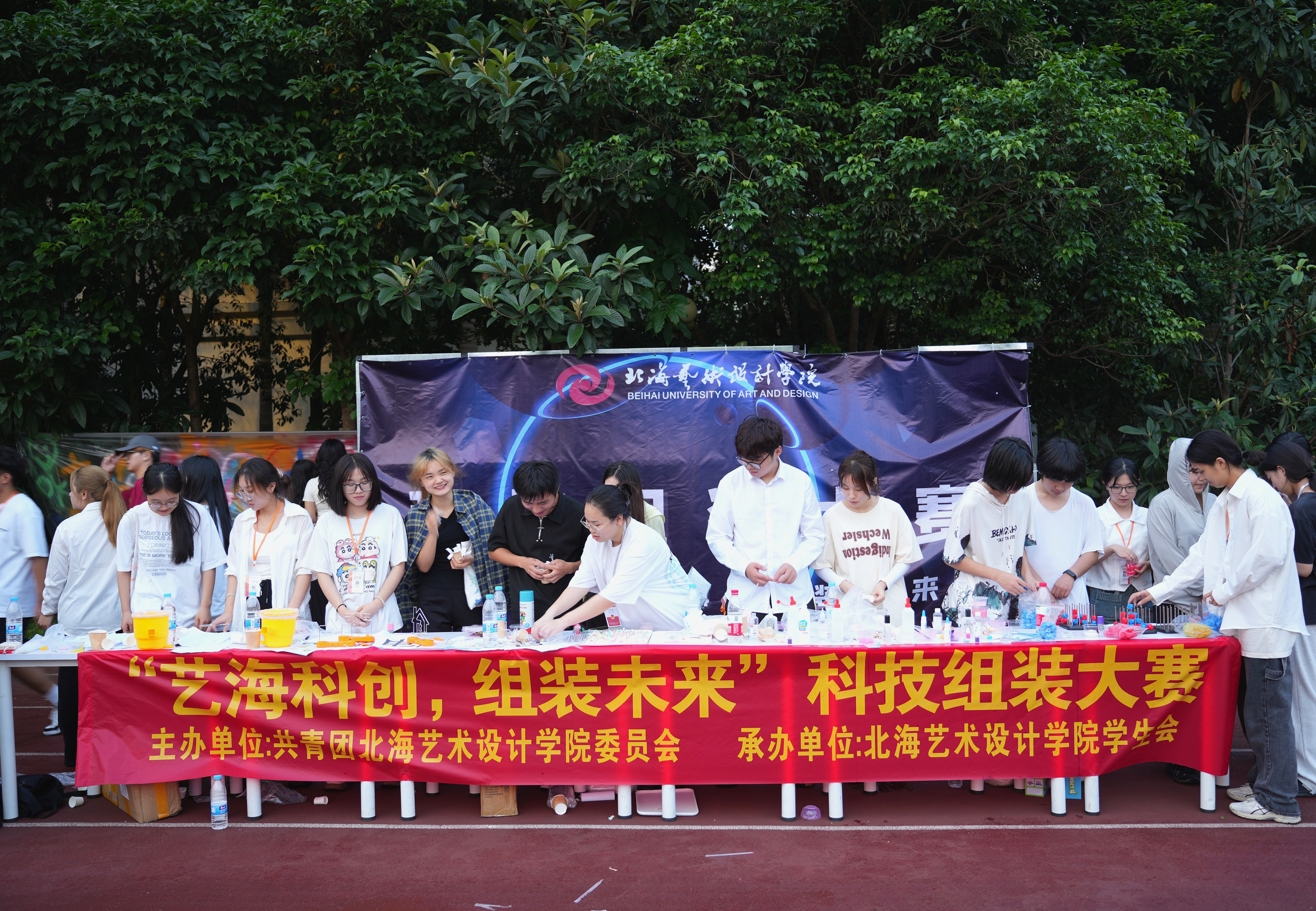 为丰富我校师生的校园文化生活,增强同学们的动手能力,提高同学们对于科技活动的兴趣,在轻松简单的小游戏中进一步发挥大学生的创造性,我校于5月8日在西区操场举行“艺海科创,组装未来”科技组装大赛,下面就让我们来看看活动的精彩时刻吧!